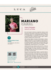 LUCA & LA POSTA: Mariano Canal, Export Manager